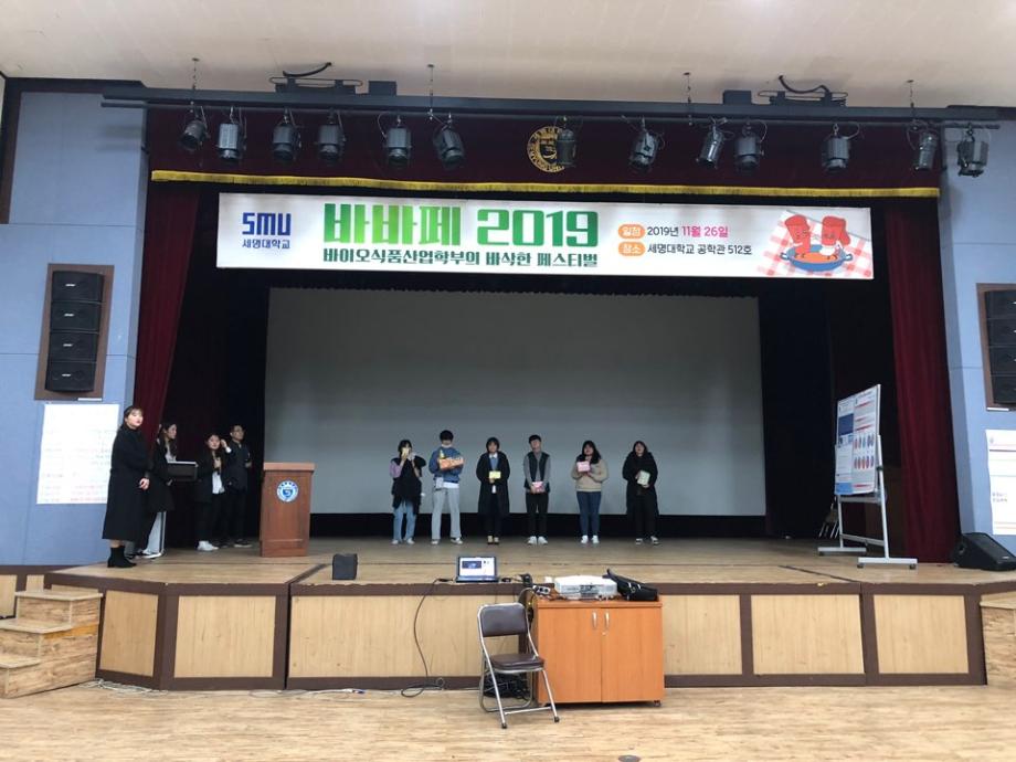 본문 시작 홈으로 커뮤니티 학부소개 진로·취업 교육과정 커뮤니티 대학원 입학상담 홈페이지가이드 갤러리 공지사항 문의게시판 학생회 전공동아리 동문회 갤러리 전공자료실 Youtube Instagram Facebook Blog 갤러리 페이스북 트위터 프린트 2019 바바페 (바이오식품산업학부 학술제) 바이오식품산업학부 5864 2019-11-28 2019년 11월 26일(화) 공학관 512호에서 진행된 바이오식품산업학부 바삭한 페스티발에 재학생 약 190명이 참여했으며 조리경연대회, 논문 및 현장실습 발표, O/X퀴즈를 진행하였다. 목록 이전실험조리 프로젝트 3( 단체급식용 샌드위치 제조 판매)실시 다음 학생경험중심 발표회 담당부서 : 바이오식품산업학부 담당자 : - 연락처 : 043-649-1431 최종수정일 : 2024-10-26 만족도조사 만족도 조사 이 페이지에서 제공하는 정보에 대하여 만족하시나요? 매우만족 만족 보통 불만족 매우불만족