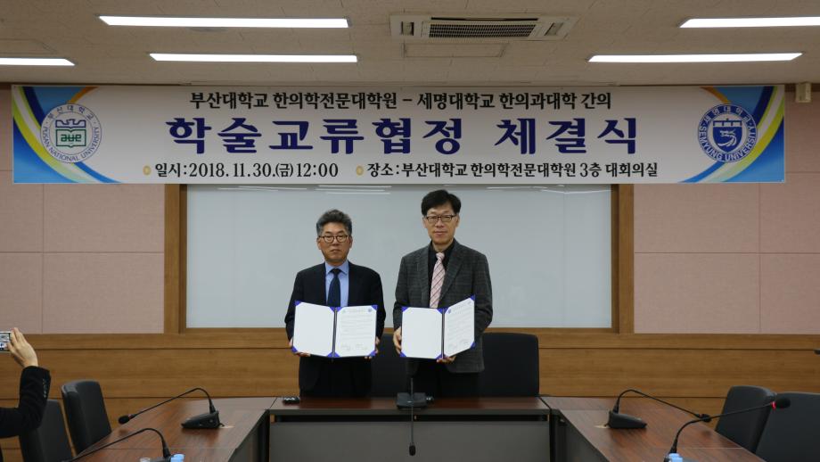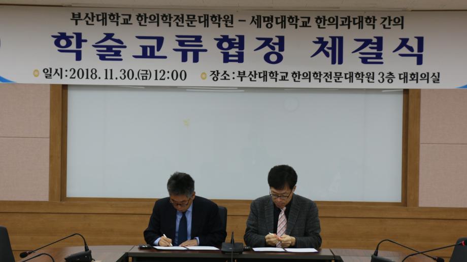 본문 시작 홈으로 대학소식 대학소개 교수소개 대학과정 커뮤니티 대학원 대학소식 홈페이지가이드 포토갤러리 학과공지 포토갤러리 발전기금 위원회 관련사이트 포토갤러리 페이스북 트위터 프린트 세명대학교 한의과대학- 부산대학교 한의학전문대학원 MOU 체결 한의과대학 7198 2018-12-05 세명대학교 한의과대학(학장 김호현)은 2018년 11월 30일 부산대학교 한의학전문대학원과 한의학 교육의 협력과 발전을 위해 상호협력협약을 체결하였다. 두 기관은 상호협력협약을 통해 한의학 임상교육에 필요한 임상실습지침서와 임상실습 프로그램을 연구・개발・시행・평가하며, 표준화환자를 훈련・시행・평가하며, 원활한 임상실습을 위해 상호 파견과 참관하는 분야에서 공동의 노력을 다함으로써 한의학 임상교육 발전에 큰 기여를 하리라 기대하고 있다. 목록 이전2018년 미니체육대회 다음 2018학년도 학위수여식 담당부서 : 한의과대학 담당자 : - 연락처 : 043-649-1701 최종수정일 : 2024-10-26 만족도조사 만족도 조사 이 페이지에서 제공하는 정보에 대하여 만족하시나요? 매우만족 만족 보통 불만족 매우불만족