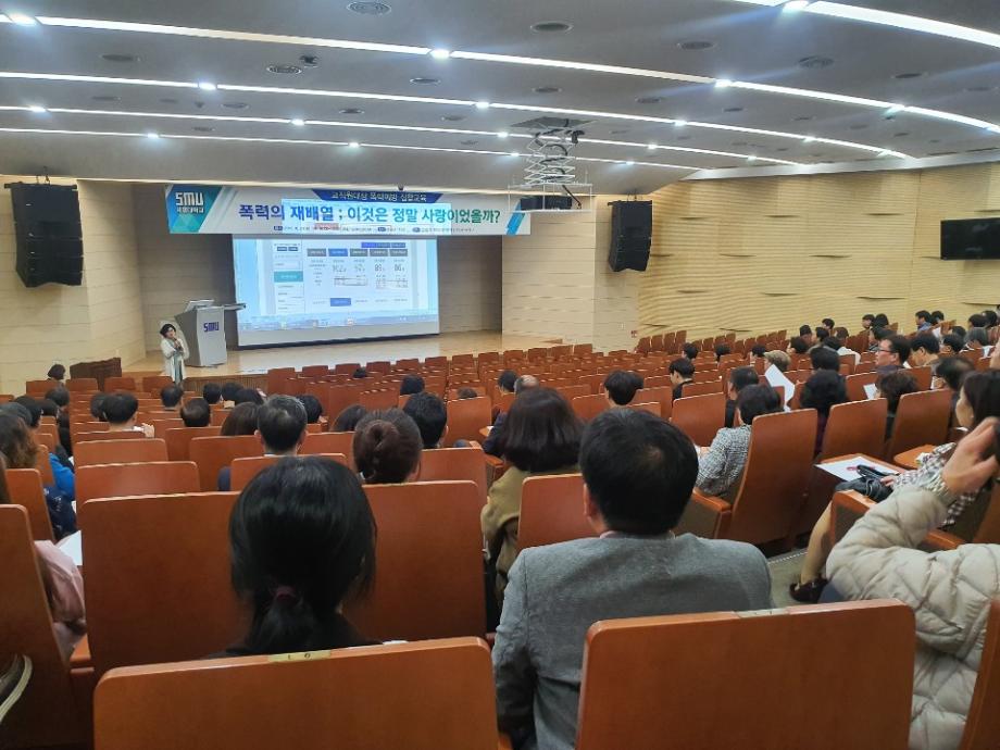 본문 시작 홈으로 커뮤니티 게시판 대학소개 교수소개 교양교육과정 교양교육 프로그램 커뮤니티 게시판 입학안내 홈페이지가이드 자료실 공지사항 자료실 학생 커뮤니티 취업정보 특강 및 기타 행사 CHARM리더십특강 CHARM커뮤니케이션 제천문화탐방과 스토리텔링 CHARM인문학콘서트~2018 향토문화탐방~2018 특강 및 기타 행사 포토 갤러리 특강 및 기타 행사 페이스북 트위터 프린트 2019학년도 교직원대상 가정폭력·성매매 예방교육 교양대학 4100 2019-10-23 < 2019학년도 가정폭력·성매매 예방교육 > 1. 주제 : [폭력의 재배열 : 이것은 정말 사랑이었을까?] 2. 일시 : 2019년 10월 23일 (수) 3. 장소 : 학술관 대세미나실 112호 4. 대상 : 본교 교직원(조교, 시간강사, 비정규직 포함) 5. 초청강사 : 이정은 강 사 님 목록 이전연합뉴스TV스페셜 - 일본의 경제보복, 400년 전 피로 쓴 징비록의 경고 (장승구학장님 인터뷰) 다음 [사고와 표현] 제 7회 우수에세이 공모전 발표 및 시상식 담당부서 : 교양대학 담당자 : - 연락처 : 043-649-7065 최종수정일 : 2024-10-26 만족도조사 만족도 조사 이 페이지에서 제공하는 정보에 대하여 만족하시나요? 매우만족 만족 보통 불만족 매우불만족