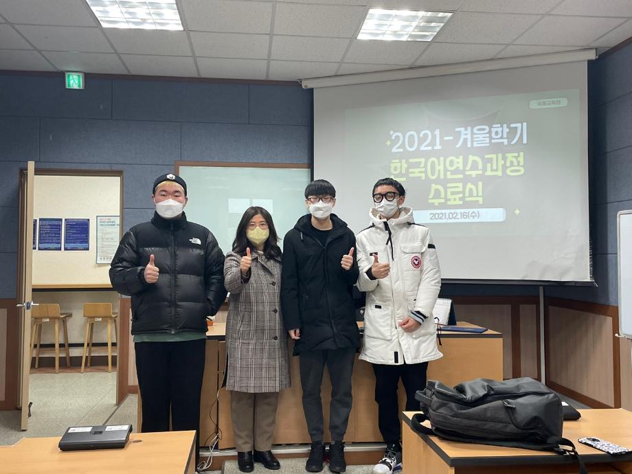 본문 시작 2021-겨울학기 종강 수료식 국제교육원 2330 2022-02-16 2021-겨울학기 종강 수료식 목록 이전2021-겨울학기(설맞이) 생활적응지원 프로그램 다음 2022-봄학기 한복문화체험활동 담당부서 : 국제교육원 담당자 : - 연락처 : 043-649-1185 최종수정일 : 2024-10-26 만족도조사 만족도 조사 이 페이지에서 제공하는 정보에 대하여 만족하시나요? 매우만족 만족 보통 불만족 매우불만족