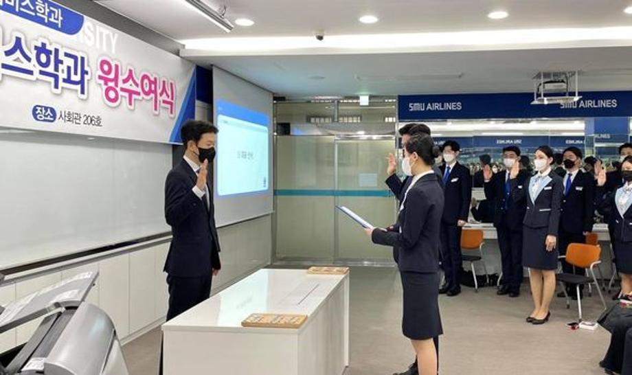 지난 11월 3일 세명대학교 항공서비스학과에서 21학번 신입생을 위한 윙수여식 행사를 진행하였습니다