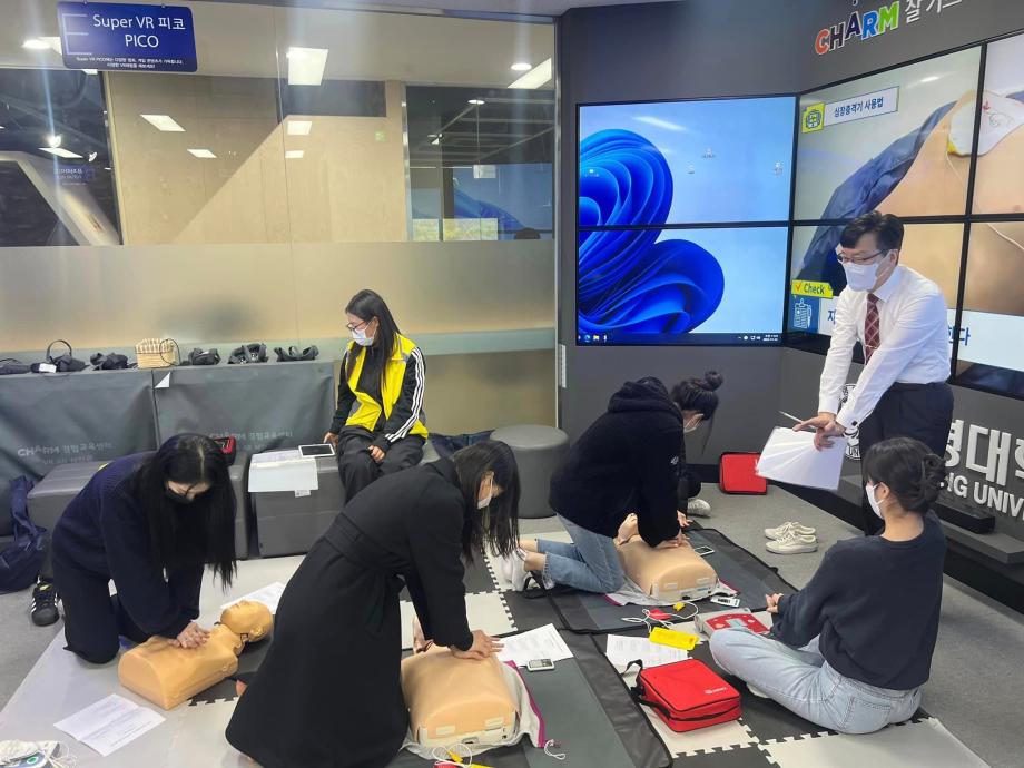 지난 11월 14일, 세명대학교 CHARM경험교육센터(VR/AR체험관)에서 2학년을 대상으로 심폐소생술 CPR 교육이 진행되었습니다 ⛑️