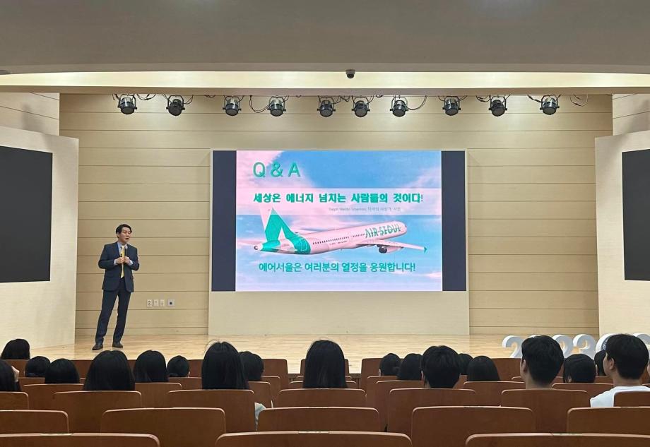 지난 5월 10일, 세명대학교 항공서비스학과에서 에어서울 캐빈승무원 팀장님의 특강이 진행되었습니다 💚