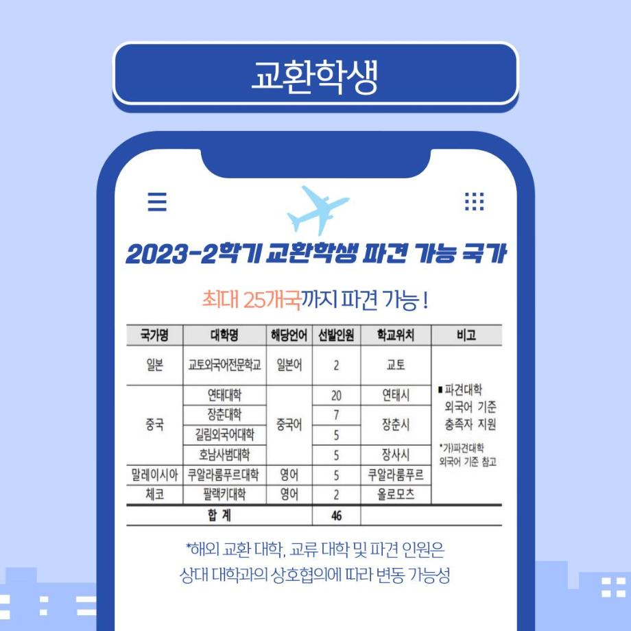 저희 세명대학교는 일본,중국,말레이시아,체코 등 다양한 학교로 교환학생을 신청할 수 있으면 합격률 1️⃣0️⃣0️⃣퍼센트를 보장하고 있습니다 !