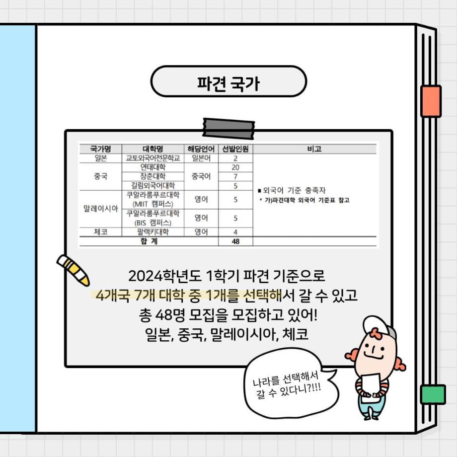 🌎교환학생 프로그램은 한 학기 또는 1년 동안 외국의 자매 대학교에서 수업을 수강하며 그 나라의 문화 및 교육을 체험하는 프로그램으로 학교 전체가 아닌 단일학과에서 위와 같은 인원을 파견하는 것은 전무후무한 놀라운 성과입니다.👏