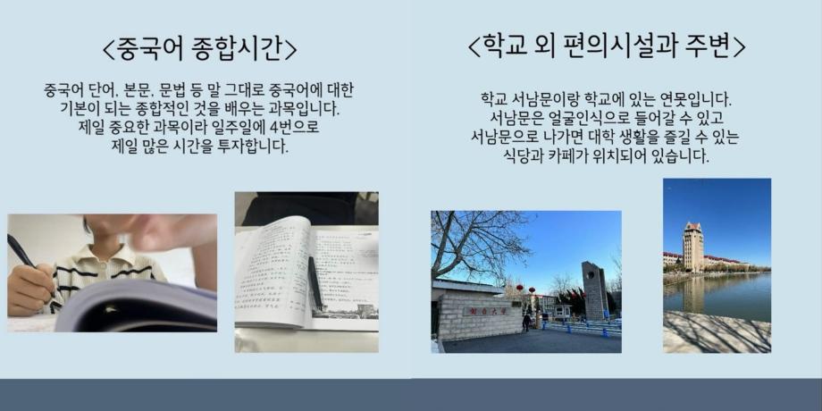 중국 연태 대학교의 생활을 카드뉴스로 제작해보았습니다!