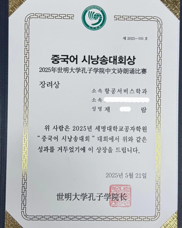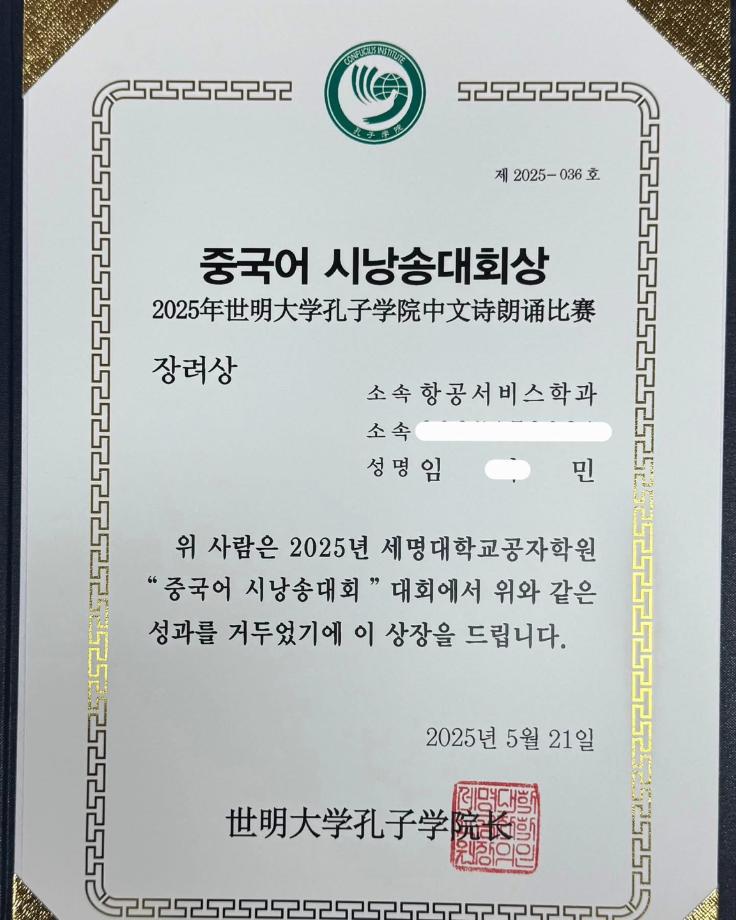 #세명대학교 #항공서비스학과 #중국어시낭송대회 #푸르미르