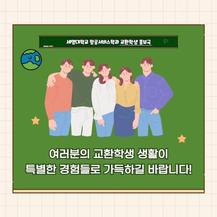 본문 시작 홈으로 커뮤니티 학과소개 입학정보 교과과정 커뮤니티 홈페이지가이드 포토갤러리 SNS 소통 공간 포토갤러리 공지사항 동아리 포토갤러리 페이스북 트위터 프린트 중국 교환학생 수업 과목 소개 항공서비스학과 4270 2025-06-13 안녕하십니까 세명대학교 항공서비스학과 온라인 홍보국 💙푸르미르💙입니다. 중국 교환학생을 가면 어떤 공부를 하는지 궁금하지 않으신가요?? 오늘은 그 궁금증을 해결해드립니다!! 소중한 꿈을 품고 그 누구보다 높이 오를 여러분을 저희 "푸르미르" 가 항상 응원하겠습니다 ✈💙 궁금한 사항이 있으시다면 언제든지 SNS로 연락 주십시오 💬 #세명대학교 #항공서비스학과 #세명대 #항공과 #푸르미르 #교환학생 #중국어 #중국교환학생 목록 이전6월 다이어리 다음 제 9회 예비승무원대회