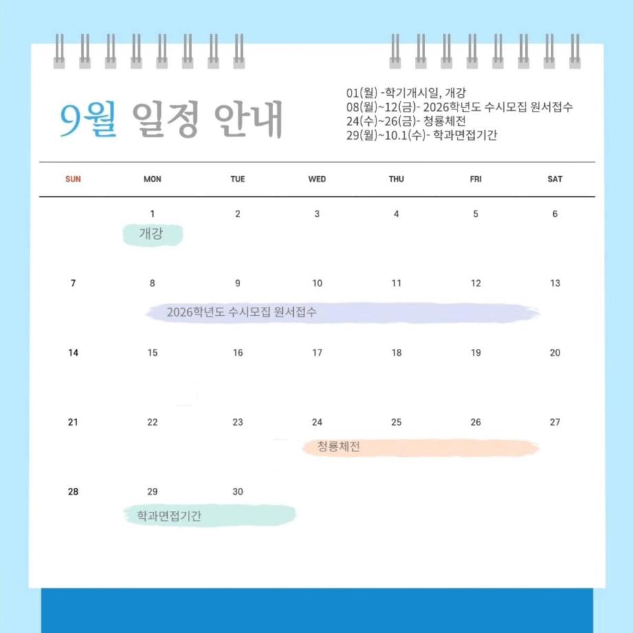 본문 시작 홈으로 커뮤니티 학과소개 입학정보 교과과정 커뮤니티 홈페이지가이드 포토갤러리 SNS 소통 공간 포토갤러리 공지사항 동아리 포토갤러리 페이스북 트위터 프린트 9월 다이어리 항공서비스학과 3920 2025-09-01 안녕하십니까 세명대학교 항공서비스학과 온라인 홍보국 💙푸르미르💙입니다. 오늘은 9월 다이어리를 가져와보았습니다 😄 9월에는 개강과 청룡체전이 있습니다! 모두 일정에 착오 없으시길 바라겠습니다! 소중한 꿈을 품고 그 누구보다 높이 오를 여러분을 저희 "푸르미르" 가 항상 응원하겠습니다 ✈💙 궁금한 사항이 있으시다면 언제든지 SNS로 연락 주십시오 💬 #세명대학교 #항공서비스학과 #세명대 #항공과 #푸르미르 #9월 #다이어리 목록 이전💙에어프레미아항공 객실승무원 취업💙 이전교환학생 준비 브이로그