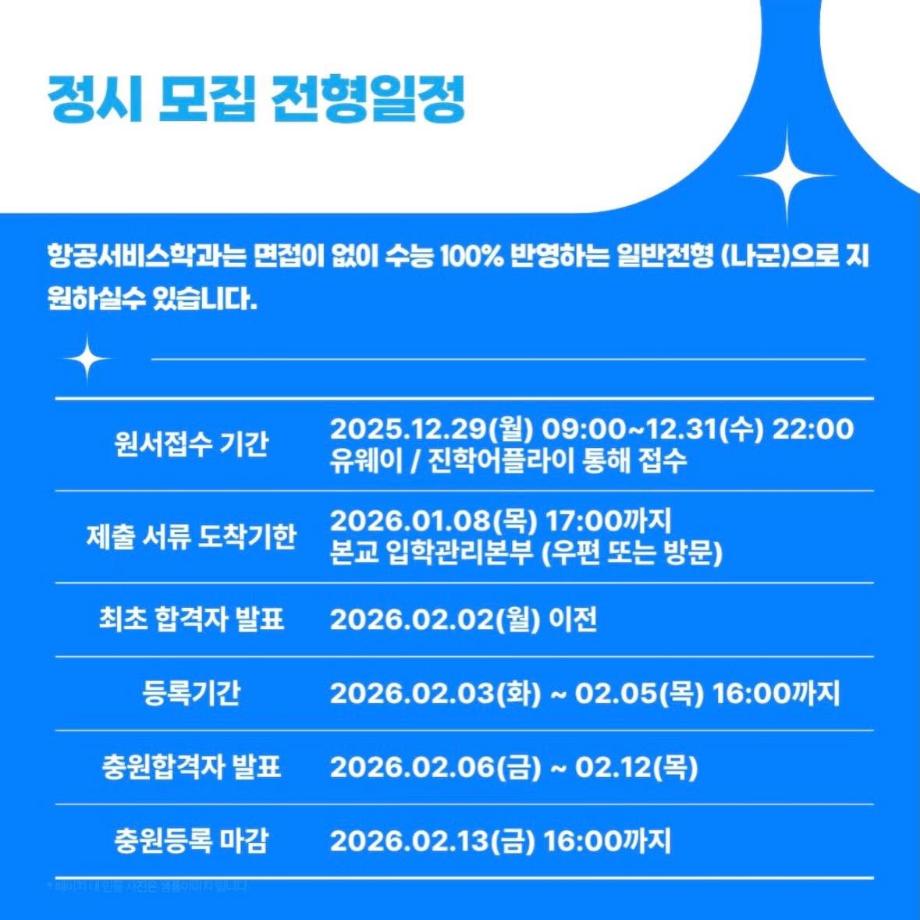 2025년 12월 29일부터 31일까지 정시 원서 접수 모집이 진행됩니다!