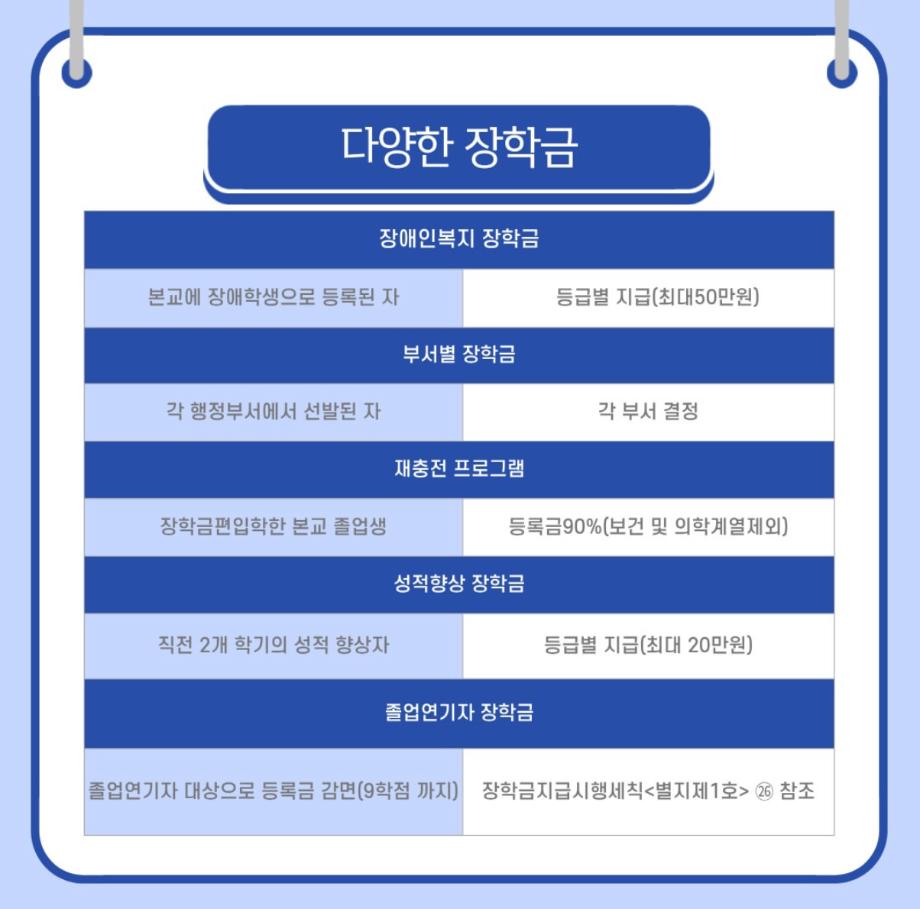 오늘은 세명대학교의 장점 중 하나인 장학금 제도에 관하여 소개해드리고자 합니다!