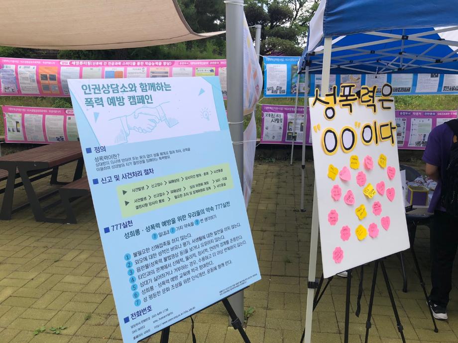 본문 시작 교내 폭력예방 캠페인_인권서포터즈와함께 CHARM케어상담센터 3826 2021-05-31 -5.25(화) 목록 이전폭력예방 캠페인_가정폭력상담소와함께 다음 인권서포터즈와 함께 캠페인 진행 준비 담당부서 : CHARM케어상담센터 담당자 : - 연락처 : 043-649-1789 최종수정일 : 2024-10-26 만족도조사 만족도 조사 이 페이지에서 제공하는 정보에 대하여 만족하시나요? 매우만족 만족 보통 불만족 매우불만족