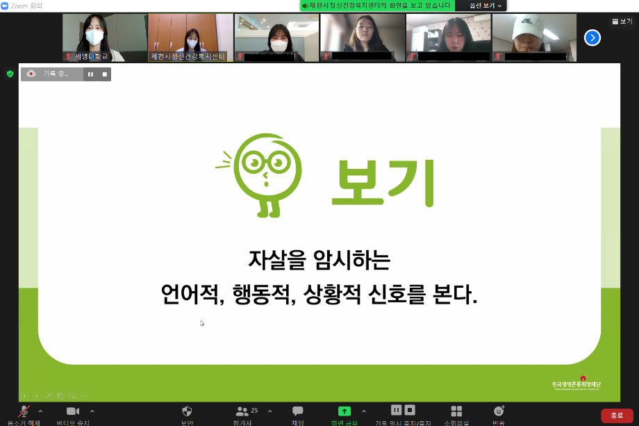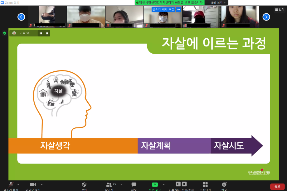 본문 시작 2022학년도 건강상담의 날 "자살예방교육"(05.11) CHARM케어상담센터 3705 2022-05-11 2022학년도 1학기 두번째 건강상담의 날 "자살예방교육"(2022.05.11) 목록 이전2022학년도 1학기 청년 대상 "방방곡곡" 마음안심버스 운영 이전2022학년도 CHARM케어상담센터 교내 캠페인 담당부서 : CHARM케어상담센터 담당자 : - 연락처 : 043-649-1789 최종수정일 : 2024-10-26 만족도조사 만족도 조사 이 페이지에서 제공하는 정보에 대하여 만족하시나요? 매우만족 만족 보통 불만족 매우불만족