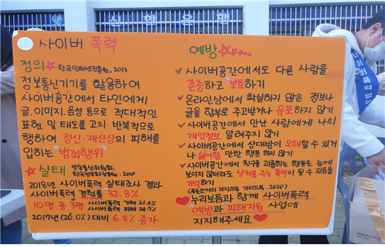 본문 시작 2020학년도 사이버폭력 예방 캠페인 CHARM케어상담센터 4461 2020-10-28 사회복지학과 학생들과 함께 목록 이전2020 상호 교류 협력을 위한 협약식 다음 2020학년도 불법카메라 10월 정기 점검 담당부서 : CHARM케어상담센터 담당자 : - 연락처 : 043-649-1789 최종수정일 : 2024-10-26 만족도조사 만족도 조사 이 페이지에서 제공하는 정보에 대하여 만족하시나요? 매우만족 만족 보통 불만족 매우불만족