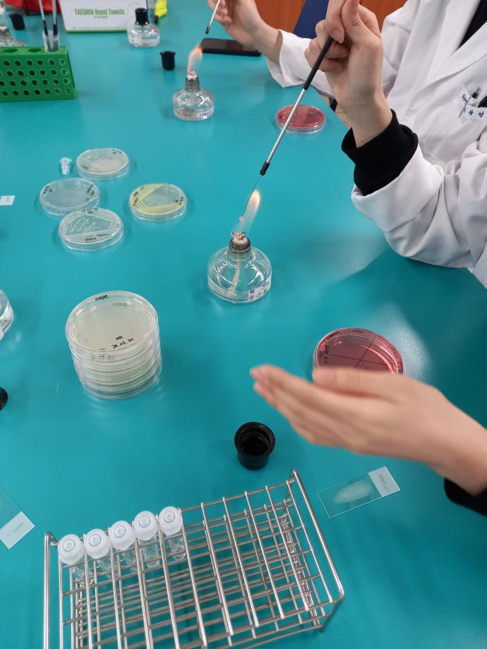 본문 시작 MSA streaking, Catalese test, Coagulase test 실험 임상병리학과 3 2026-04-08 MSA를 이용한 Mannitol 발효 균주와 비균주를 구분하는 실험, Catalese test를 통해 과산화수소와 반응하여 거품이 생성되는 균주를 보는 실험, Coagulase test를 통해 혈장응고효소와 반응하여 응고되는 반응을 보이는 균주를 확인하는 실험을 했습니다. 목록 이전세균맨 회식 담당부서 : 임상병리학과 담당자 : - 연락처 : 043-649-1537 최종수정일 : 2024-10-26 만족도조사 만족도 조사 이 페이지에서 제공하는 정보에 대하여 만족하시나요? 매우만족 만족 보통 불만족 매우불만족