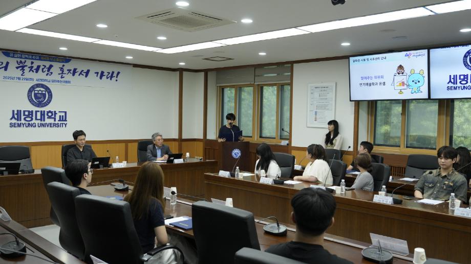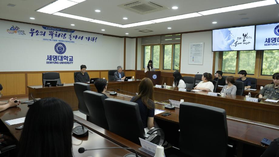 본문 시작 Photo SMU 세명소개 입학/취업 대학/대학원 학사지원 대학생활 연구/산학 기관/시설 SMU Story 소통·공감 학교기업 홈페이지가이드 학생활동 News@SMU 공지사항 보도자료 Photo SMU Media SMU 민송백일장 해카톤 경진대회 학생활동 페이스북 트위터 프린트 밀어주는 위원회 제4회 무소출정식 홍보센터 2842 2025-07-29 밀어주는 위원회 꿈 실현 장학금 수여 제4회 무소출정식 목록 이전2025 자기설계 해외배낭연수 발대식 다음 2025 제10기 세명대학교 하계 해외봉사단 발대식 담당부서 : 홍보센터 담당자 : 홍보센터 연락처 : 043-649-1175 최종수정일 : 2024-10-26 만족도조사 만족도 조사 이 페이지에서 제공하는 정보에 대하여 만족하시나요? 매우만족 만족 보통 불만족 매우불만족