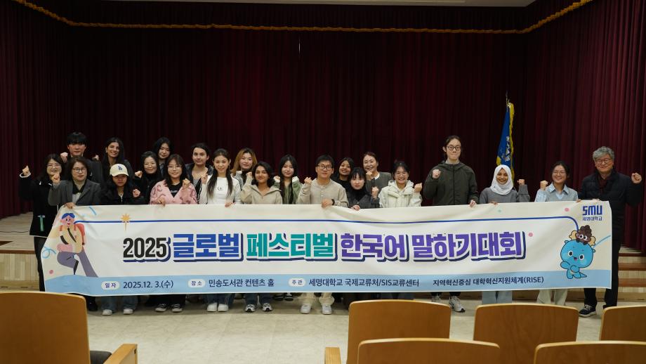 본문 시작 Photo SMU 세명소개 입학/취업 대학/대학원 학사지원 대학생활 연구/산학 기관/시설 SMU Story 소통·공감 학교기업 홈페이지가이드 학생활동 News@SMU 공지사항 보도자료 Photo SMU Media SMU 민송백일장 해카톤 경진대회 학생활동 페이스북 트위터 프린트 제1회 글로벌페스티벌 홍보센터 1908 2025-12-03 제1회 글로벌페스티벌 목록 이전인문예술대학 콘텐츠페스티벌 다음 2025학년도 전기학위수여식 담당부서 : 홍보센터 담당자 : 홍보센터 연락처 : 043-649-1175 최종수정일 : 2024-10-26 만족도조사 만족도 조사 이 페이지에서 제공하는 정보에 대하여 만족하시나요? 매우만족 만족 보통 불만족 매우불만족