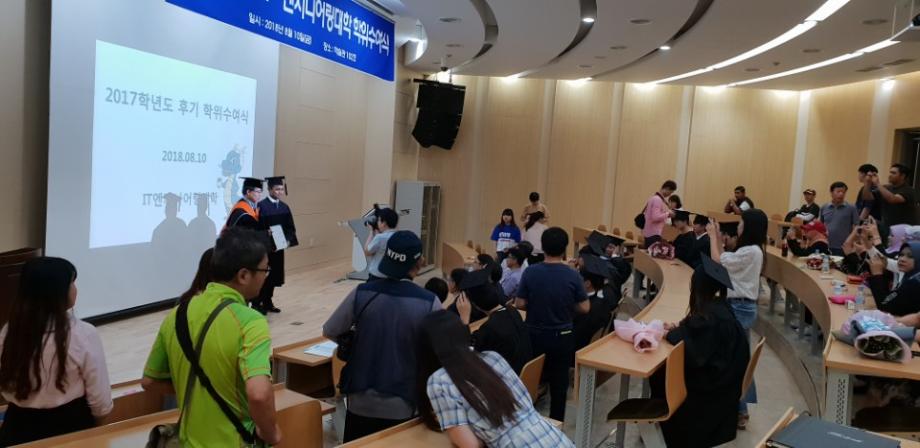2017학년도 후기 학위수여식을 2018년 8월 10일 학술관 102호에서 실시하였다.