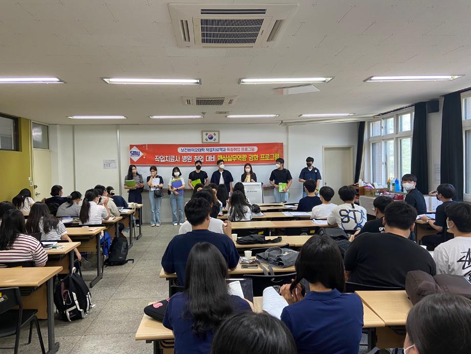 핵심실무역량 강화 프로그램은 보건계열 전문인으로써 실무역량 증진을 위한 프로그램으로 세명대학교 작업치료학과 4학년 학생들을 대상으로 매년 실시하고 있습니다. 올해도 마찬가지로 4학년 학생들을 대상으로 하여 핵심실무역량 강화 프로그램을 실시하여 학생들의 실무역량에 도움을 주는 시간이 되었습니다. 코로나 에 대비하여 학생들의 건강 및 안전을 지킬수 있도록 모든 안전규정을 준수하여 프로그램을 진행하였습니다.