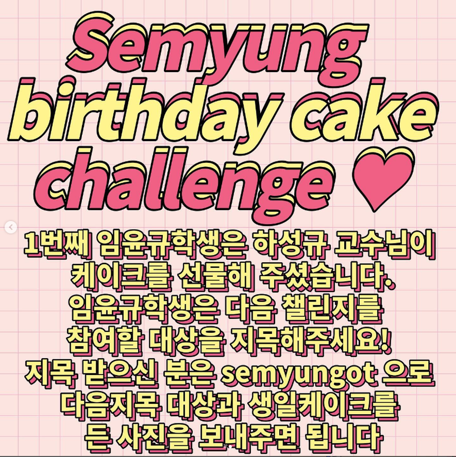 본문 시작 홈으로 커뮤니티 학과소개 진로 및 취업 학과과정 커뮤니티 SNS 홈페이지가이드 학과 소식 및 행사 학과공지 학과 소식 및 행사 대학생활 엿보기 어쩌다 출근 챌린지 학생회 동아리 통학버스 시간표 학과 소식 및 행사 페이스북 트위터 프린트 semyung happy birthday cake challenge!! 작업치료학과 2072 2022-05-24 생일 케익을 받은 사람이 다음번 생일자에게 케익을 선물( 조각케익, 초코파이도 너무 좋아요) 사진을 잘 보시면 challenge의 시그니쳐 포즈 비밀이 있습니다. 목록 이전스승의날 행사 다음 제 7회 늘픔 학술제 담당부서 : 작업치료학과 담당자 : - 연락처 : 043-649-1632 최종수정일 : 2024-10-26 만족도조사 만족도 조사 이 페이지에서 제공하는 정보에 대하여 만족하시나요? 매우만족 만족 보통 불만족 매우불만족