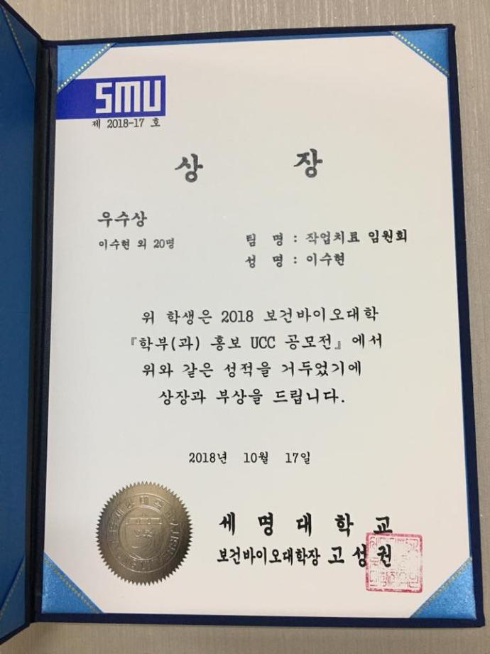 본문 시작 홈으로 커뮤니티 학과소개 진로 및 취업 학과과정 커뮤니티 SNS 홈페이지가이드 학과 소식 및 행사 학과공지 학과 소식 및 행사 대학생활 엿보기 어쩌다 출근 챌린지 학생회 동아리 통학버스 시간표 학과 소식 및 행사 페이스북 트위터 프린트 작업치료학과 홍보 UCC 공모전 우수상 수상 작업치료학과 7190 2018-10-19 10월 17일, 보건바이오대학이 주최하는 학부(과) 홍보 UCC 공모전에서 저희 작업치료학과가 우수상을 받게 되었습니다.👍 홍보부장 이수현 학생이 대표로 상을 받았습니다.😊 임원진들이 함께 개사를 하여 녹음을 하였고, 서상민 교수님께서 특별 출연을 해주셨습니다.❤️ 좋은 UCC 작품이 나올 수 있게 한 임원진 모두 수고 많으셨습니다.💓 목록 이전작업치료학과 과소풍 다음 2018 1차 학술특강 실시 담당부서 : 작업치료학과 담당자 : - 연락처 : 043-649-1632 최종수정일 : 2024-10-26 만족도조사 만족도 조사 이 페이지에서 제공하는 정보에 대하여 만족하시나요? 매우만족 만족 보통 불만족 매우불만족