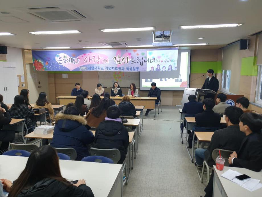 본문 시작 홈으로 커뮤니티 학과소개 진로 및 취업 학과과정 커뮤니티 SNS 홈페이지가이드 학과 소식 및 행사 학과공지 학과 소식 및 행사 대학생활 엿보기 어쩌다 출근 챌린지 학생회 동아리 통학버스 시간표 학과 소식 및 행사 페이스북 트위터 프린트 2018년도 사은회 작업치료학과 7092 2018-12-10 12월 10일, 작업치료사 국가시험을 보고 돌아온 4학년 학생들이 교수님들을 모시고 사은회를 진행하였습니다. 사은회는 과대표 학생의 편지 낭독, 그동안 교수님들께 궁금했던 질문들, 마지막으로 4학년 학생들에게 하고 싶은 교수님의 말씀 순으로 진행하였습니다. 4학년 학생들이 졸업하기 전 교수님들과 거리감 없이 함께 나눌 수 있는 좋은 시간이었습니다. 그동안 많은 가르침을 주신 스승의 은혜를 잊지 않겠습니다. 감사합니다. 목록 이전제46회 작업치료사 국가시험 다음 2018 임상실습 간담회 담당부서 : 작업치료학과 담당자 : - 연락처 : 043-649-1632 최종수정일 : 2024-10-26 만족도조사 만족도 조사 이 페이지에서 제공하는 정보에 대하여 만족하시나요? 매우만족 만족 보통 불만족 매우불만족