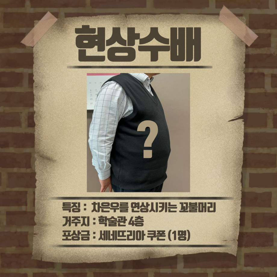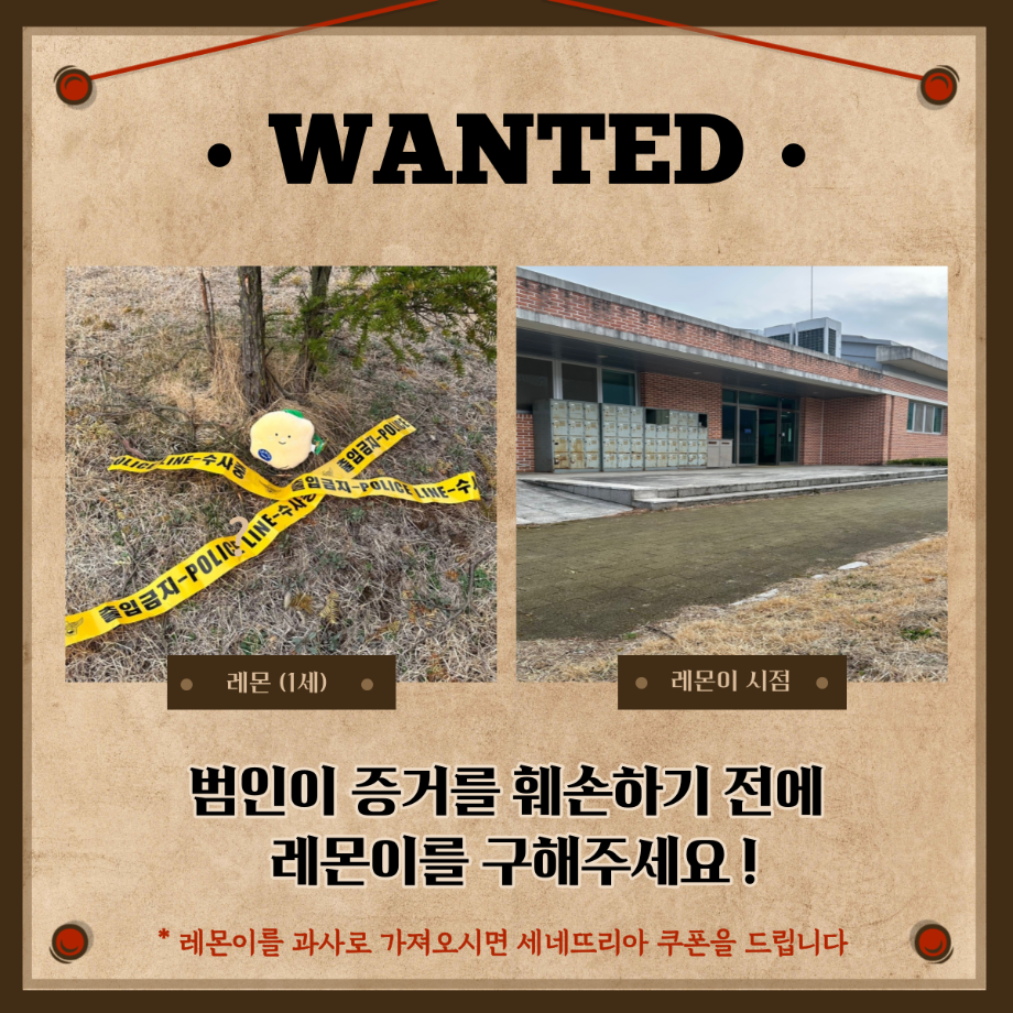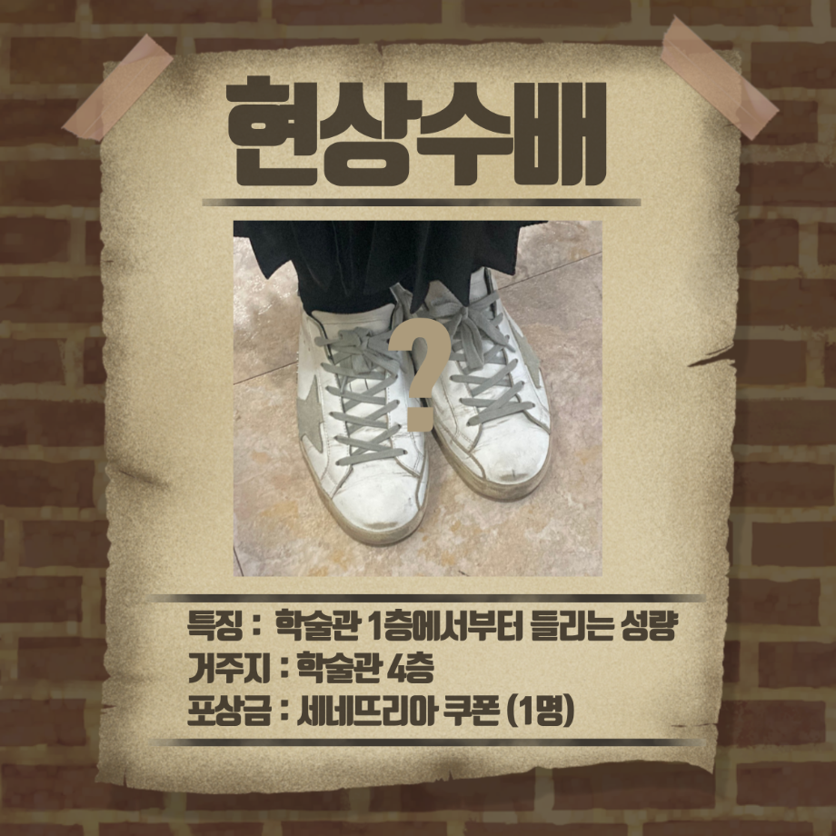 본문 시작 홈으로 커뮤니티 학과소개 교수소개 학과과정 커뮤니티 홈페이지가이드 포토갤러리 학부공지 학과일정 포토갤러리 학생회 동아리 포토갤러리 페이스북 트위터 프린트 1,2학년 3월 게릴라 이벤트 진행 경찰학과 3237 2023-03-27 3월 27일 월요일 12시부터 경찰학과 1, 2학년 학생들을 대상으로 게릴라 이벤트를 진행하였습니다. 게릴라 이벤트 내용은 "레몬이를 살해한 범인과 살해된 레몬이를 찾아주세요" 였습니다. 현상수배 전단지를 인스타 게시물을 통해 확인하신 후 범인을 찾아 인증샷을 찍어 오거나 범인에게 살해당한 레몬이를 찾아 과사무실로 가져오시는 분께 포상금을 제공하는 활동을 하였습니다. 목록 이전2023학년도 경찰학과 학생회 소개 영상 다음 3,4학년 3월 게릴라 이벤트 진행 만족도조사 만족도 조사 이 페이지에서 제공하는 정보에 대하여 만족하시나요? 매우만족 만족 보통 불만족 매우불만족