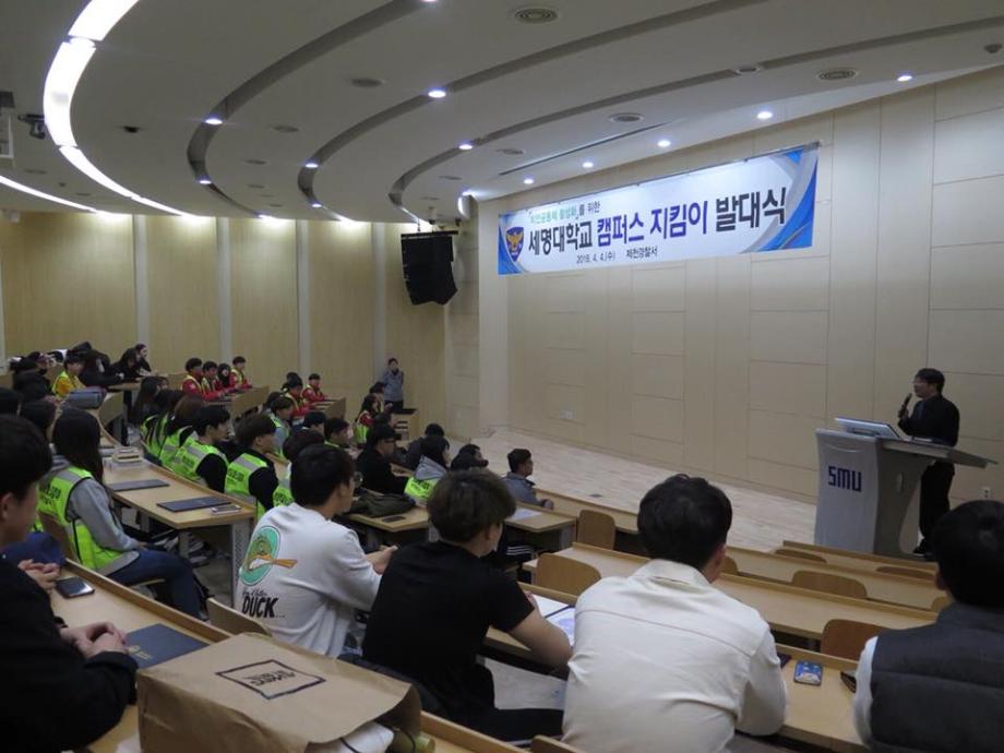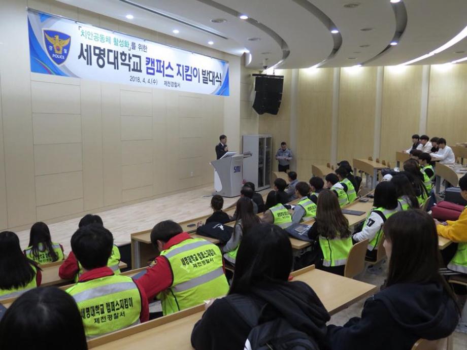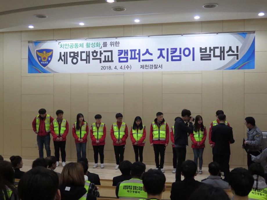 본문 시작 홈으로 커뮤니티 학과소개 교수소개 학과과정 커뮤니티 홈페이지가이드 포토갤러리 학부공지 학과일정 포토갤러리 학생회 동아리 포토갤러리 페이스북 트위터 프린트 2018 제천경찰서와 함께하는 캠퍼스 지킴이 발대식 경찰행정학과 6412 2018-04-04 캠퍼스 지킴이 발대식이 있었습니다. 제천경찰서와 세명대 경찰행정학과가 함께하여 제천의 취약한 일대를 순찰하게 되었습니다. 앞으로의 지킴이 활동이 기대가 됩니다. 목록 이전2018 꿈 설계학기 OT 다음 2018 경찰행정학과 MT 만족도조사 만족도 조사 이 페이지에서 제공하는 정보에 대하여 만족하시나요? 매우만족 만족 보통 불만족 매우불만족