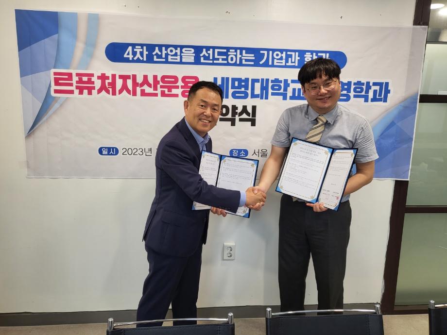 본문 시작 홈으로 커뮤니티 학과소개 학생진로 교과과정 커뮤니티 학과 SNS 홈페이지가이드 학과 갤러리 공지사항 대학원 학과 갤러리 학과 이야기 동아리 학생회 학과 갤러리 페이스북 트위터 프린트 [경영학과] 르퓨쳐자산운용 협약식 경영학과 5485 2023-07-18 2023년 7월 14일 금요일 르퓨쳐자산운용이 세명대 경영학과와 인재채용 및 개발 협력과 관련된 협약식을 체결했다. 목록 이전[경영학과] 세명고등학교 방문 행사 다음 [경영학과] 제천여고 지도 담당부서 : 경영학과 담당자 : - 연락처 : 043-649-1766 최종수정일 : 2024-10-26 만족도조사 만족도 조사 이 페이지에서 제공하는 정보에 대하여 만족하시나요? 매우만족 만족 보통 불만족 매우불만족