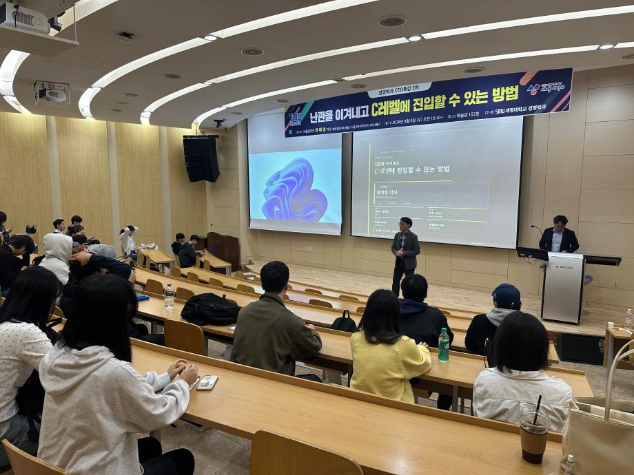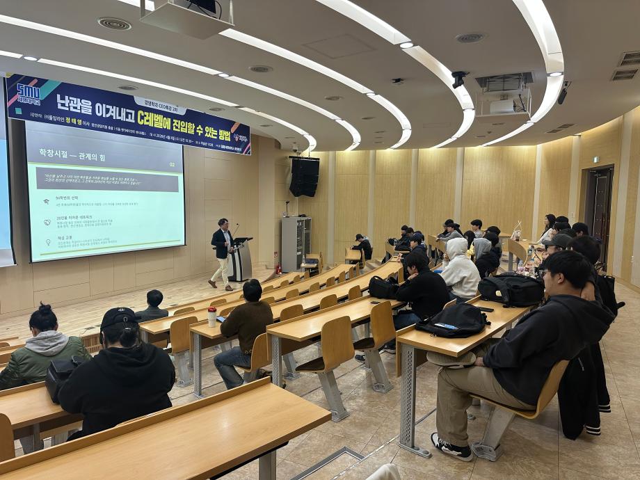 4월 8일 학술관 102호에서 정태영 이사님의 '난관을 이겨내고 C레벨에 진입할 수 있는 방법' 강연이 있었습니다!