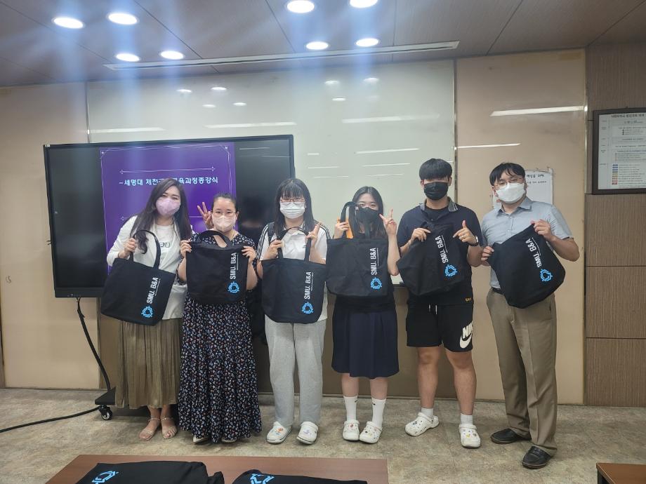 본문 시작 홈으로 커뮤니티 학과소개 학생진로 교과과정 커뮤니티 학과 SNS 홈페이지가이드 학과 갤러리 공지사항 대학원 학과 갤러리 학과 이야기 동아리 학생회 학과 갤러리 페이스북 트위터 프린트 2022학년도 제천 공동교육과정 종강식 경영학과 3064 2022-07-14 2022.7.12 화요일 세명대 경영학과에서 진행한 제천공동교육과정 종강식이 열렸다. 그동안 코스에 참여한 학생들과 교수님들간 끝인사를 나누고 경영학과 에코백 등 소정의 기념품을 전달했다. 목록 이전2022학년도 경영프로젝트 회계스타K [불4조] 다음 2022학년도 경영프로젝트 회계스타K [세명회담] 담당부서 : 경영학과 담당자 : - 연락처 : 043-649-1766 최종수정일 : 2024-10-26 만족도조사 만족도 조사 이 페이지에서 제공하는 정보에 대하여 만족하시나요? 매우만족 만족 보통 불만족 매우불만족