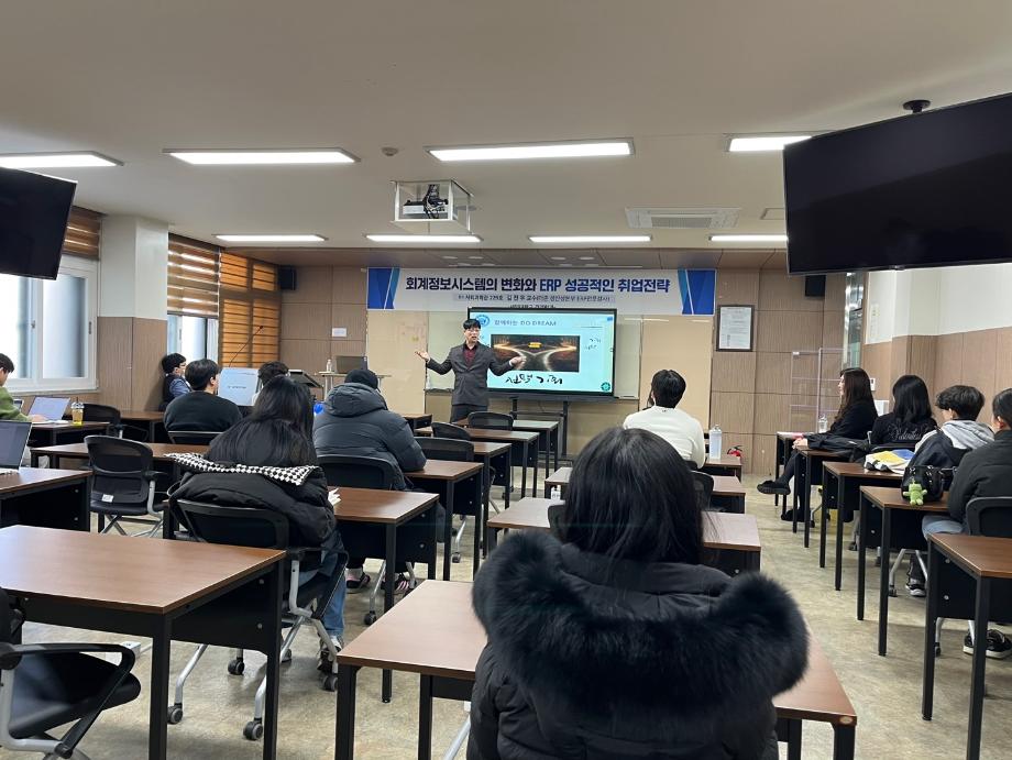본문 시작 홈으로 커뮤니티 학과소개 학생진로 교과과정 커뮤니티 학과 SNS 홈페이지가이드 학과 갤러리 공지사항 대학원 학과 갤러리 학과 이야기 동아리 학생회 학과 갤러리 페이스북 트위터 프린트 [경영학과] ERP 성공적인 취업 전략 특강 경영학과 1800 2025-02-14 더존 생산성본부 ERP 전문 강사 김진우 교수님께서 회계정보시스템의 변화와 ERP 성공적인 취업 전략 특강을 진행하셨습니다. 취업과 진로에 많은 도움이 되는 특강으로, 참석한 학생들 모두 유익한 시간이었다고 합니다. 목록 이전[경영학과] 2024학년도 대학원 학위수여식 다음 [경영학과] 2024학년도 경영학과 학위수여식 담당부서 : 경영학과 담당자 : - 연락처 : 043-649-1766 최종수정일 : 2024-10-26 만족도조사 만족도 조사 이 페이지에서 제공하는 정보에 대하여 만족하시나요? 매우만족 만족 보통 불만족 매우불만족