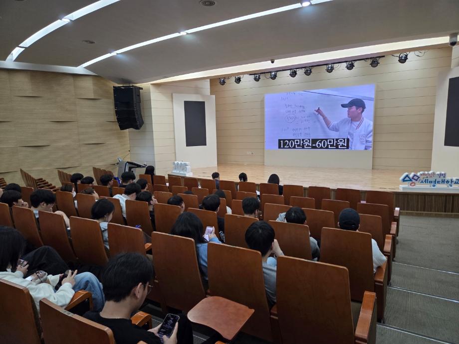 본문 시작 홈으로 커뮤니티 학과소개 학생진로 교과과정 커뮤니티 학과 SNS 홈페이지가이드 학과 갤러리 공지사항 대학원 학과 갤러리 학과 이야기 동아리 학생회 학과 갤러리 페이스북 트위터 프린트 [경영학과] 회계스타K 행사 경영학과 1621 2025-05-20 5월 19일 학술관 112호에서 회계스타k를 진행하였습니다. 이 시간에는 1학년 학생들이 전공 시간에 배운 내용으로 회계 개념을 설명하는 창의적인 콘텐츠를 제작하여 발표하였습니다. 목록 이전[경영학과] 세명진로 FESTIVAL 자랑스러운 세명인 토크쇼 경영학과 졸업생 참여 다음 [경영학과] 성년의 날 행사 담당부서 : 경영학과 담당자 : - 연락처 : 043-649-1766 최종수정일 : 2024-10-26 만족도조사 만족도 조사 이 페이지에서 제공하는 정보에 대하여 만족하시나요? 매우만족 만족 보통 불만족 매우불만족