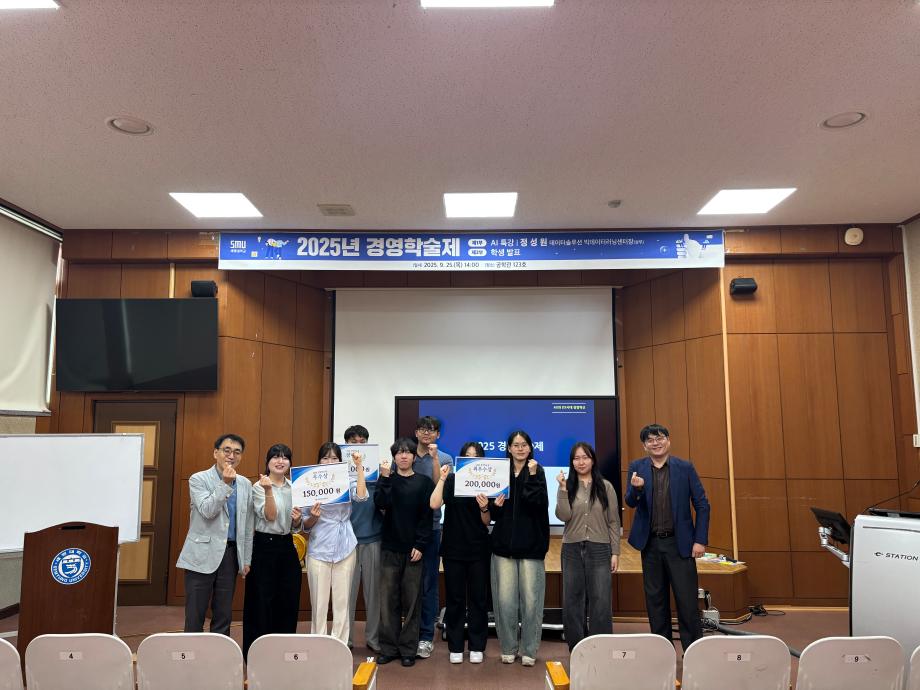 본문 시작 홈으로 커뮤니티 학과소개 학생진로 교과과정 커뮤니티 학과 SNS 홈페이지가이드 학과 갤러리 공지사항 대학원 학과 갤러리 학과 이야기 동아리 학생회 학과 갤러리 페이스북 트위터 프린트 [경영학과] 경영학술제 행사 경영학과 1190 2025-09-30 9월 25일(목) 14시 공학관 123호에서 경영학술제가 개최되었습니다. 1부에서는 정성원 상무님의 데이터 솔루션 특강이, 2부에서는 학생들의 논문 발표가 진행되었습니다. 이번 학술제를 통해 학생들이 연구 역량을 강화하고 학문적 교류의 장을 넓힐 수 있었습니다. 참여해 주신 모든 학생 여러분, 수고 많으셨습니다! 목록 이전[경영학과] 청룡체전 먹거리 부스 다음 [일반대학원 경영학과] 논문 예비발표 및 논문심사 담당부서 : 경영학과 담당자 : - 연락처 : 043-649-1766 최종수정일 : 2024-10-26 만족도조사 만족도 조사 이 페이지에서 제공하는 정보에 대하여 만족하시나요? 매우만족 만족 보통 불만족 매우불만족