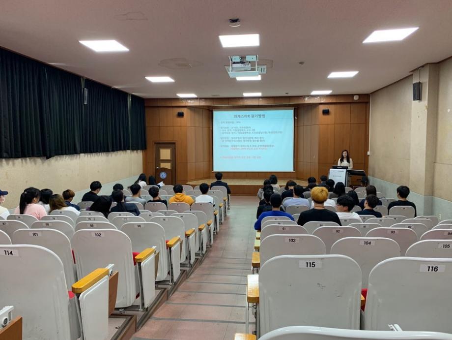 본문 시작 홈으로 커뮤니티 학과소개 학생진로 교과과정 커뮤니티 학과 SNS 홈페이지가이드 학과 갤러리 공지사항 대학원 학과 갤러리 학과 이야기 동아리 학생회 학과 갤러리 페이스북 트위터 프린트 2019.05.29.(수) 회계스타K 진행 경영학과 7916 2019-06-03 경영학과에서는 2019.05.29.(수) 회계스타K 행사를 진행하였습니다. 위 행사는 회계원리 과목을 강의하시는 곽지영 교수님께서 기획하셨고, 학생 본인들이 배운 회계 내용을 직접 영상으로 제작하였습니다. 영상의 취지는 보다 쉽게 회계원리를 접할 수 있도록 하는 것이었습니다. 질 높은 영상 콘텐츠를 만들어준 학생여러분 수고하셨습니다. 진행해주신 곽지영 교수님께 감사의 말씀 드립니다. 목록 이전2019.05.24.(금) 부경대 한국생산관리학회 공모전 입상 다음 한국품질경영학회 춘계학회(품질학회) 입상소식 담당부서 : 경영학과 담당자 : - 연락처 : 043-649-1766 최종수정일 : 2024-10-26 만족도조사 만족도 조사 이 페이지에서 제공하는 정보에 대하여 만족하시나요? 매우만족 만족 보통 불만족 매우불만족