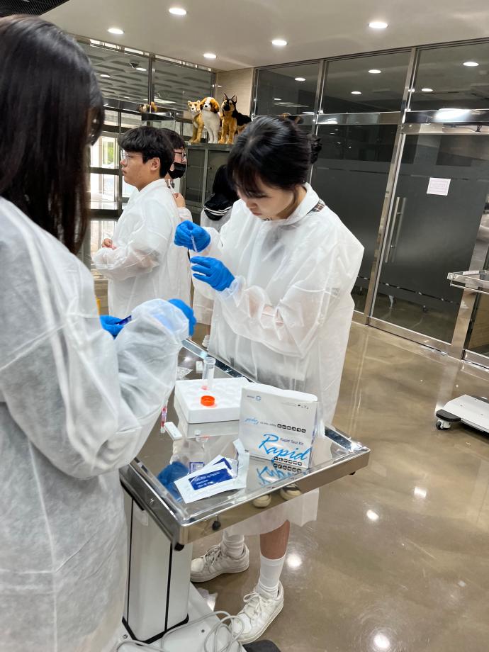 본문 시작 홈으로 학과게시판 학과소개 교육과정 학과게시판 관련사이트 홈페이지가이드 포토갤러리 학과소식 포토갤러리 동아리 소개 포토갤러리 페이스북 트위터 프린트 단양고등학교 동물바이오헬스학과 전공체험 동물바이오헬스학과 2014 2023-06-09 2023년 5월26일 단양고등학교 3학년 학생들이 동물바이오헬스학과에서 "바이러스 실험실 체험"이라는 주제로 체험과 토론을 진행했습니다. 많은 학생들이 실습 체험을 하면서 신속간이진단킷트의 원리를 경험하는 시간이 되었습니다 목록 이전동물바이오헬스학과 제천제일고등학교 전공체험(프리칼리지) 다음 제6회 보건바이오대학 학과홍보 UCC 공모전 수상 담당부서 : 동물보건학과 담당자 : - 연락처 : 043-649-1627 최종수정일 : 2024-10-26 만족도조사 만족도 조사 이 페이지에서 제공하는 정보에 대하여 만족하시나요? 매우만족 만족 보통 불만족 매우불만족