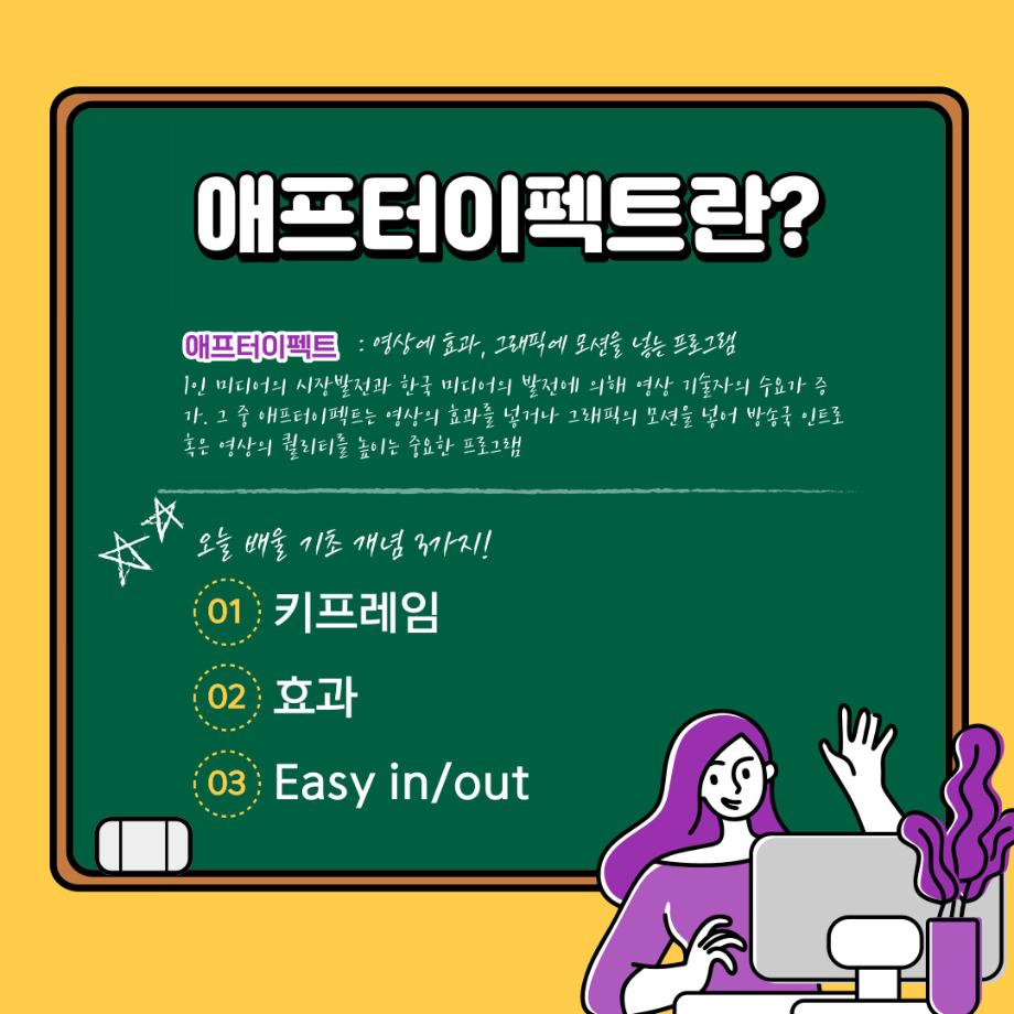 본문 시작 홈으로 학과자랑 학과소개 학과과정 시영소식 입학/취업 AI 학과자랑 SNS소통 홈페이지가이드 갤러리 학과자랑 갤러리 공모전 동아리 졸업전시회 갤러리 페이스북 트위터 프린트 예비 대학생을 위한 디자인 프로그램 설명 3탄 (애프터이펙트) 시각영상디자인학과 2218 2022-02-07 3학년때 배우는 디자인툴 애프터이펙트입니다. 목록 이전예비 대학생을 위한 디자인 프로그램 설명 2탄 (포토샵) 다음 예비 대학생을 위한 디자인 프로그램 설명 4탄 (Html/Css) 담당부서 : 시각영상디자인학과 담당자 : - 연락처 : 043-649-1726 최종수정일 : 2024-10-26 만족도조사 만족도 조사 이 페이지에서 제공하는 정보에 대하여 만족하시나요? 매우만족 만족 보통 불만족 매우불만족