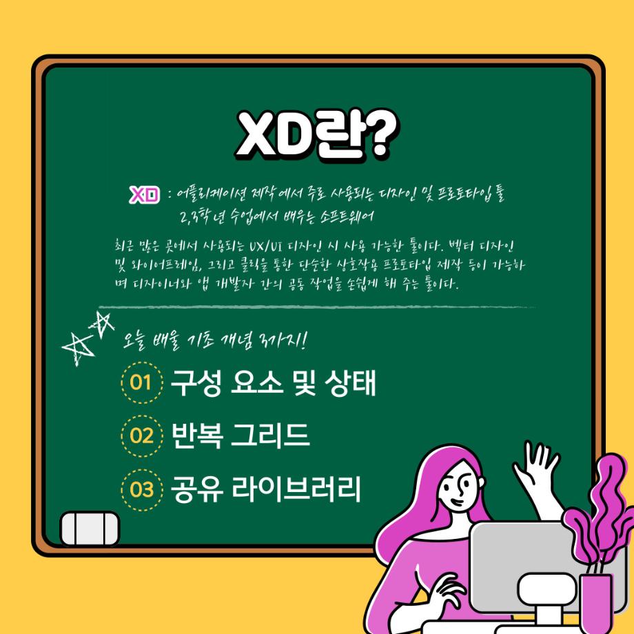 본문 시작 홈으로 학과자랑 학과소개 학과과정 시영소식 입학/취업 AI 학과자랑 SNS소통 홈페이지가이드 갤러리 학과자랑 갤러리 공모전 동아리 졸업전시회 갤러리 페이스북 트위터 프린트 예비 대학생을 위한 디자인 프로그램 설명 6탄 (XD) 시각영상디자인학과 2320 2022-02-13 목록 이전예비 대학생을 위한 디자인 프로그램 설명 5탄 (인디자인) 다음 예비 대학생을 위한 디자인 프로그램 설명 7탄 (Cinema 4D) 담당부서 : 시각영상디자인학과 담당자 : - 연락처 : 043-649-1726 최종수정일 : 2024-10-26 만족도조사 만족도 조사 이 페이지에서 제공하는 정보에 대하여 만족하시나요? 매우만족 만족 보통 불만족 매우불만족