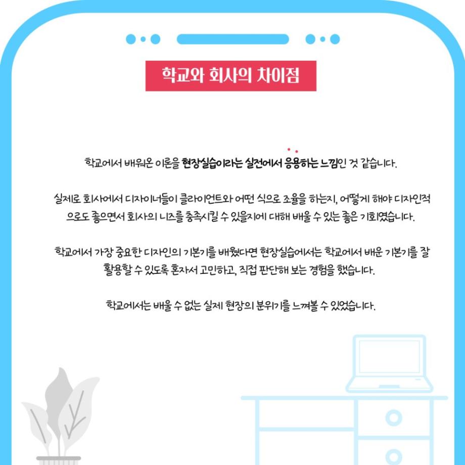 본문 시작 홈으로 학과자랑 학과소개 학과과정 시영소식 입학/취업 AI 학과자랑 SNS소통 홈페이지가이드 갤러리 학과자랑 갤러리 공모전 동아리 졸업전시회 갤러리 페이스북 트위터 프린트 2022년 여름방학 현장실습 알아보기! 2탄 시각영상디자인학과 4747 2022-08-03 2022년 여름방학 현장실습 알아보기! 2탄 유튜브 링크 https://www.youtube.com/watch?v=4CEG3-eYjWE&t=25s [출처] 2022년 여름방학 현장실습 알아보기! 2탄|작성자 세명대학교시각영상 목록 이전세명대학교 시각영상디자인 학생들의 현장실습 1탄 다음 세명대학교만의 특별한 휴식공간 담당부서 : 시각영상디자인학과 담당자 : - 연락처 : 043-649-1726 최종수정일 : 2024-10-26 만족도조사 만족도 조사 이 페이지에서 제공하는 정보에 대하여 만족하시나요? 매우만족 만족 보통 불만족 매우불만족