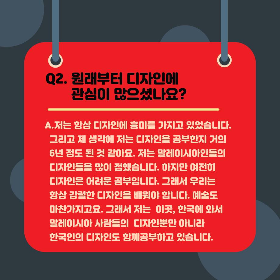 본문 시작 홈으로 학과자랑 학과소개 학과과정 시영소식 입학/취업 AI 학과자랑 SNS소통 홈페이지가이드 갤러리 학과자랑 갤러리 공모전 동아리 졸업전시회 갤러리 페이스북 트위터 프린트 말레이시아 교환학생 인터뷰 시각영상디자인학과 4515 2023-06-19 목록 이전벽화활동 인터뷰 - 박범준 학생 다음 2023년도 한국디자인학회 국제초대전 졸업생, 대학원생 전시 담당부서 : 시각영상디자인학과 담당자 : - 연락처 : 043-649-1726 최종수정일 : 2024-10-26 만족도조사 만족도 조사 이 페이지에서 제공하는 정보에 대하여 만족하시나요? 매우만족 만족 보통 불만족 매우불만족