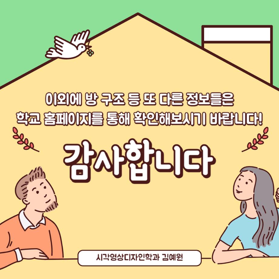 입시생을 위한 링크서비스 입학안내 수시모집 정시모집 편입학 Q&A 학과안내 성적자동산출 입시자료신청 대학소개 장학제도 >학생생활관(기숙사) >찾아오시는길 캠퍼스투어 >국제교류 >학군단(ROTC) >통학버스 입시생 레이어 닫기