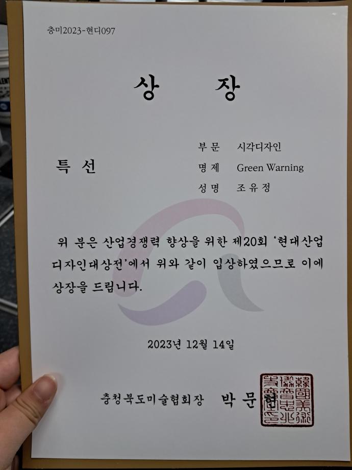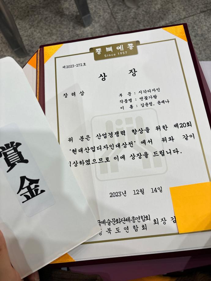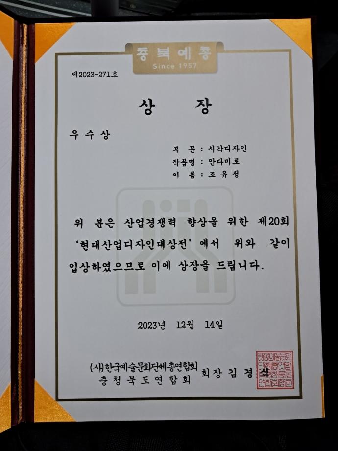 본문 시작 홈으로 학과자랑 학과소개 학과과정 시영소식 입학/취업 AI 학과자랑 SNS소통 홈페이지가이드 갤러리 학과자랑 갤러리 공모전 동아리 졸업전시회 갤러리 페이스북 트위터 프린트 제 20회 현대산업디자인대상전 시상식 시각영상디자인학과 2390 2023-12-15 12월 15일, 제 20회 현대산업디자인대상전에서 세명대학교 시각영상디자인과 학생들이 입상을 하여 시상식에 초대되었습니다. 수상자는 [ 우수상 (조유정 )] [ 장려상 (박범준,김윤정,윤세나) ] [ 특선 (김예원, 박서정, 박수빈, 송윤진, 윤세나, 김윤정, 허유빈, 조유정, 황정윤) ] [ 입선 (김건우, 김윤정, 신유빈) ]입니다. 수상하신 분들, 그리고 아쉽게도 수상하지 못한 학생분들도 모두 수고하셨습니다. 목록 이전2023학년도 캡스톤디자인 경진대회 - 최우수상 2작품 다음 행복한 성탄과 연휴되세요. 담당부서 : 시각영상디자인학과 담당자 : - 연락처 : 043-649-1726 최종수정일 : 2024-10-26 만족도조사 만족도 조사 이 페이지에서 제공하는 정보에 대하여 만족하시나요? 매우만족 만족 보통 불만족 매우불만족