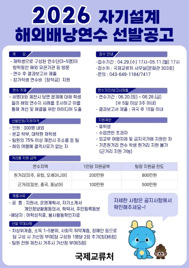 [구제교류팀] 2026 자기설계 해외배낭연수 설명회