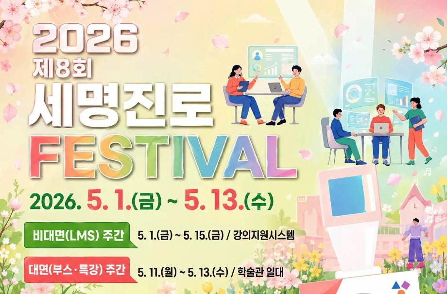 | 5.13.(화) | 13:30~15:20 | 학술관 112호 | 자랑스러운 세명인 | 졸업생들이 자신의 학교 생활, 취업 경험 등을 공유하며, 후배들에게 영감을 주는 대화의 장 |