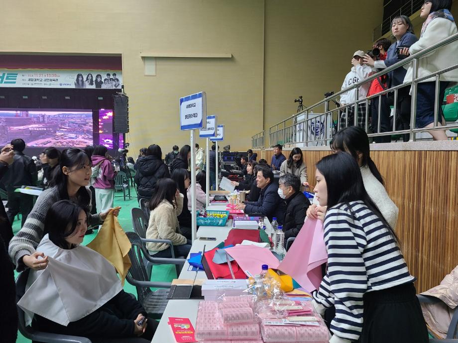 11월 21일 화요일, 학업과 입시 스트레스에 지친 학생들을 격려하고자 세명 체육관에서 열린 '청소년 빅콘서트'에 우리 뷰티케어학과도 참여하여 간이 퍼스널컬러 진단을 하였습니다!