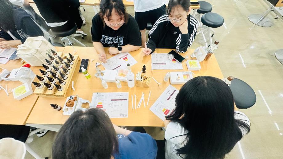 본문 시작 홈으로 커뮤니티 학과소개 교수소개 학과과정 커뮤니티 대학원 홈페이지가이드 포토갤러리 공지사항 채용정보 포토갤러리 Youtube 바로가기 Instargram 바로가기 Blog 바로가기 Facebook 바로가기 포토갤러리 페이스북 트위터 프린트 뷰티케어학과 2024 향수 만들기 뷰티케어학과 2144 2024-06-13 사람을 보여주는 것에 있어, 외적인 부분도 있지만, 또 느낌적인 부분이 있는데요. 이 사람의 느낌을 가장 잘 표현하는 것이 그 사람이 사용하고 있는 향수가 아닐까 싶어요. 자신만의 향을 만들고 자신이 만든 향으로 자신을 치창하는 모습이 뷰티케어학과와 잘 어울리는 수업이 아니었나 싶네요 목록 이전뷰티케어학과 청주SBS뷰티아카데미 입시설명회 다음 세명대학교 뷰티케어센터 소개