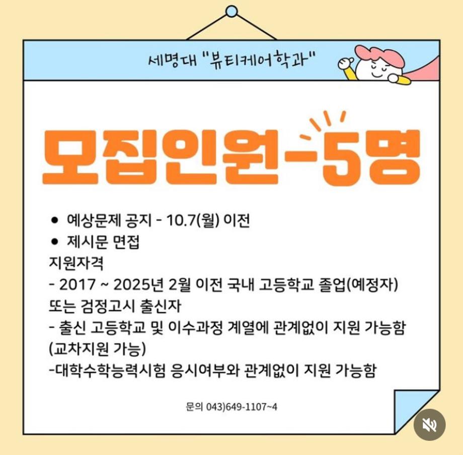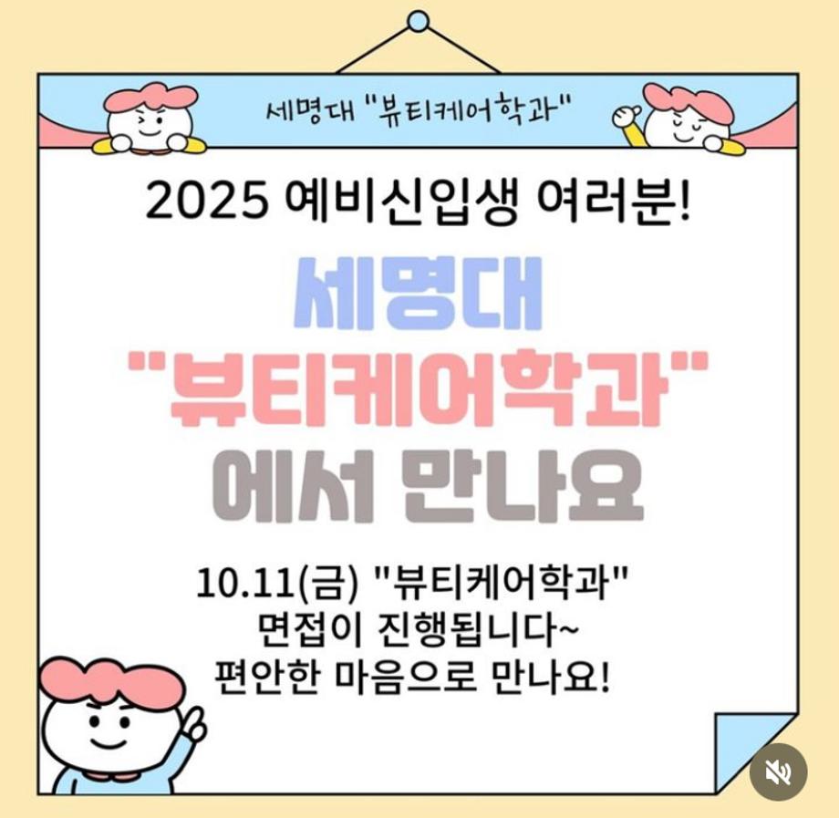 본문 시작 홈으로 커뮤니티 학과소개 교수소개 학과과정 커뮤니티 대학원 홈페이지가이드 포토갤러리 공지사항 채용정보 포토갤러리 Youtube 바로가기 Instargram 바로가기 Blog 바로가기 Facebook 바로가기 포토갤러리 페이스북 트위터 프린트 📣 2025 세명대학교 “뷰티케어학과” 면접우수자전형 면접 일정 📣 바이오코스메틱학과 1874 2024-10-02 📣 2025 세명대학교 “뷰티케어학과” 면접우수자전형 면접 일정 📣 면접우수자전형 면접은 10.11(금) 입니다!! 많은 관심과 지원 부탁드리겠습니다!! 2025 예비 세명인 여러분 “뷰티케어학과” 에서 만나요🫶🏻🫶🏻 목록 이전면접 우수자 전형 다음 헤어기초커트1