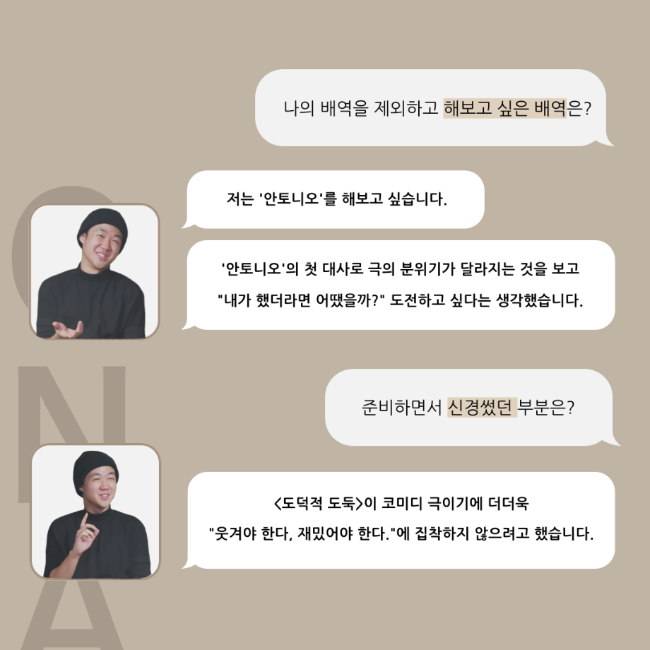 본문 시작 홈으로 커뮤니티 학과소개 입학정보 교수소개 학과과정 커뮤니티 공연예매 안내 홈페이지가이드 포토갤러리 공지사항 포토갤러리 작품DB 동아리 학사일정 학생회 포토갤러리 페이스북 트위터 프린트 ‘품’위있는 인‘터뷰’ - 하계프로젝트 도둑役 <박상훈> 연기예술학과 3202 2024-09-13 안녕하십니까. 24년도 학회 ‘품’ 입니다. 학회 ‘품’의 열 네 번째 인터뷰로 세명대학교 연기예술학과 하계프로젝트 <도덕적 도둑> 의 도둑 역인 박상훈 학우와 인터뷰 하는 시간을 가졌습니다. 가장 좋아하는 장면, 자신의 배역을 제외하고 해보고 싶은 배역 그리고 준비하면서 어려웠던 부분과 공연을 마친 소감 등에 대해 인터뷰 하는 시간을 가졌습니다. 앞으로 있을 인터뷰 컨텐츠인 ‘품터뷰’ 많은 사랑 부탁드립니다. 목록 이전논문통계분석 LIVE 특강 안내 다음 ‘품’위있는 인‘터뷰’ - 하계프로젝트 안토니오役 <정준혁> 담당부서 : 연기예술학과 담당자 : - 연락처 : 043-649-1733 최종수정일 : 2024-10-26 만족도조사 만족도 조사 이 페이지에서 제공하는 정보에 대하여 만족하시나요? 매우만족 만족 보통 불만족 매우불만족