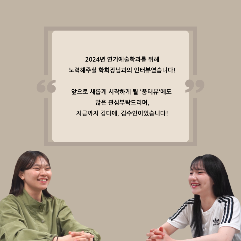 본문 시작 홈으로 커뮤니티 학과소개 입학정보 교수소개 학과과정 커뮤니티 공연예매 안내 홈페이지가이드 포토갤러리 공지사항 포토갤러리 작품DB 동아리 학사일정 학생회 포토갤러리 페이스북 트위터 프린트 '품'위있는 인'터뷰' - 24년도 학회장 <이재현> 연기예술학과 3359 2024-04-30 안녕하십니까. 24년도 학회 ‘품‘ 입니다. 학회 ‘품’의 첫번째 인터뷰로 세명대학교 연기예술학과 24년도 학회장인 이재현 학회장과 인터뷰(질문)하는 시간을 가졌습니다. 학회장으로서의 각오, 방향성 그리고 학과생에게 전하고 싶은 말과 학회에게 남기는 메세지 등을 질문하는 시간을 가졌습니다. 앞으로 있을 인터뷰 컨텐츠인 ‘품터뷰’ 많은 사랑 부탁드립니다. 목록 이전세명대학교 연기예술학과 극장동아리 ‘짜스트’ - 무대, 조명 다음 나의 학습역량 진단 결과 조회하기 [재공지] 2024학년도 학습역량 진단 조회 안내 담당부서 : 연기예술학과 담당자 : - 연락처 : 043-649-1733 최종수정일 : 2024-10-26 만족도조사 만족도 조사 이 페이지에서 제공하는 정보에 대하여 만족하시나요? 매우만족 만족 보통 불만족 매우불만족