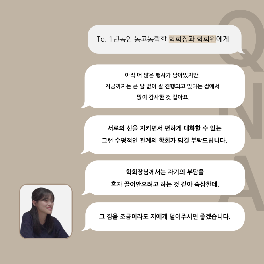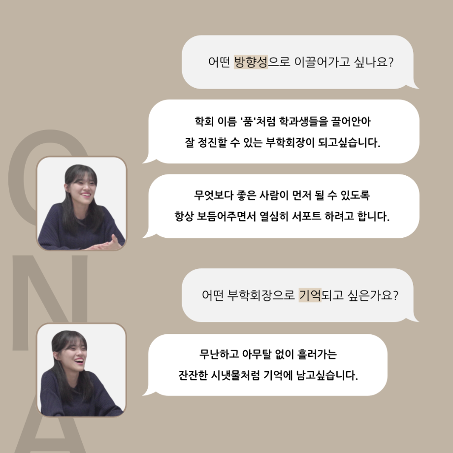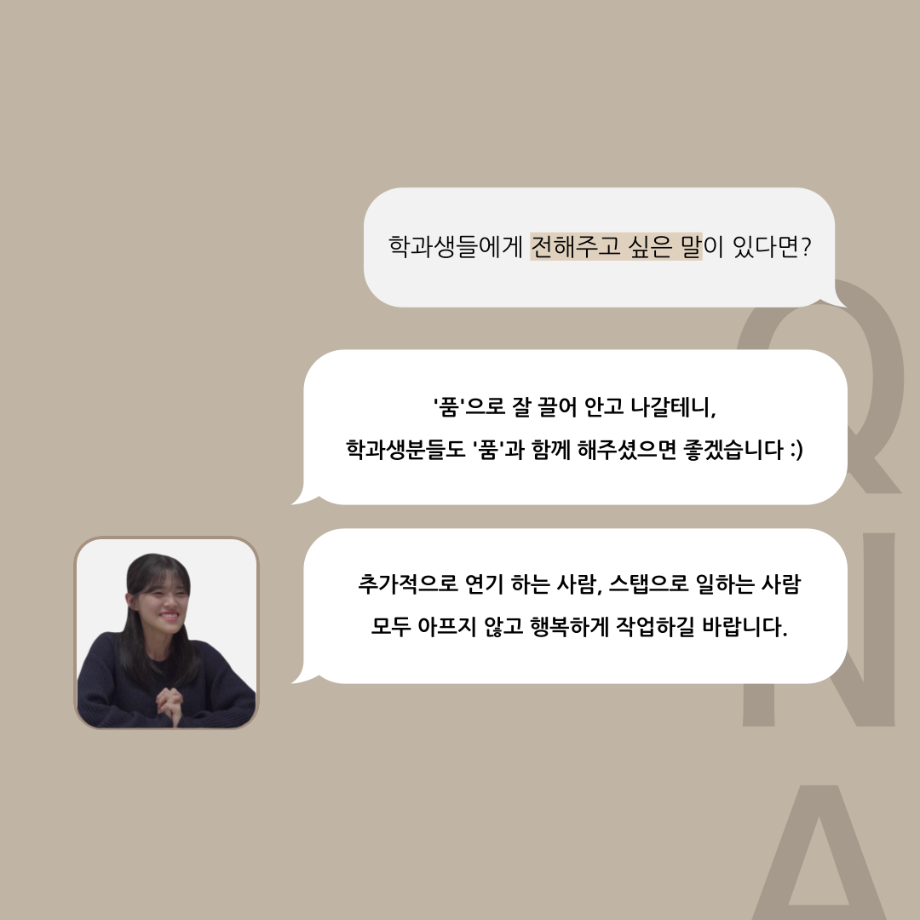 본문 시작 홈으로 커뮤니티 학과소개 입학정보 교수소개 학과과정 커뮤니티 공연예매 안내 홈페이지가이드 포토갤러리 공지사항 포토갤러리 작품DB 동아리 학사일정 학생회 포토갤러리 페이스북 트위터 프린트 '품'위있는 인'터뷰' - 24년도 부학회장 <최가람> 연기예술학과 3354 2024-07-10 안녕하십니까. 24년도 학회 ‘품‘ 입니다. 학회 ‘품’의 두 번째 인터뷰로 세명대학교 연기예술학과 24학년도 부학회장인 최가람 학우와 인터뷰 하는 시간을 가졌습니다. 부학회장으로서의 각오, 방향성 그리고 학과생에게 전하고 싶은 말과 학회에게 남기는 메세지 등을 질문하는 시간을 가졌습니다. 앞으로 있을 인터뷰 컨텐츠인 ‘품터뷰’ 많은 사랑 부탁드립니다. 목록 이전2024학년도 하계방학 진로, 취업 LMS 특강 다음 '품'위있는 인'터뷰' - 24년도 극장장 <이종화> 담당부서 : 연기예술학과 담당자 : - 연락처 : 043-649-1733 최종수정일 : 2024-10-26 만족도조사 만족도 조사 이 페이지에서 제공하는 정보에 대하여 만족하시나요? 매우만족 만족 보통 불만족 매우불만족